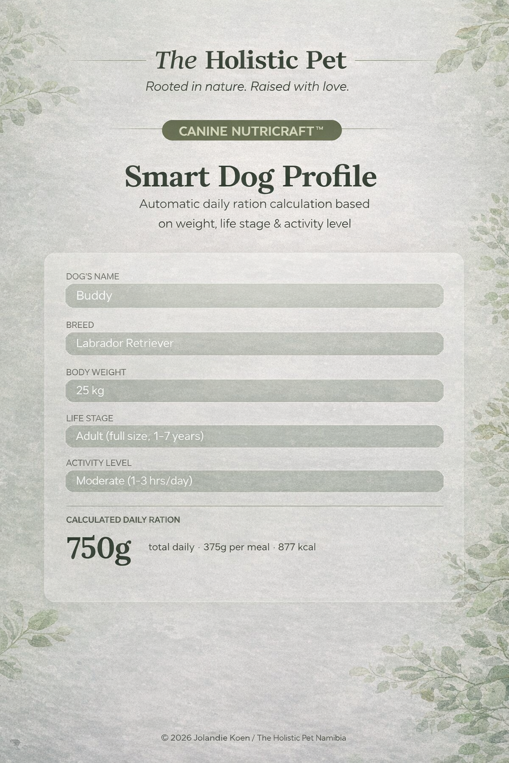 This advanced nutrition planning system helps you build complete meals tailored to each dog’s individual needs. By combining smart nutrition tracking with natural whole-food guidance, Canine NutriCraft ensures every meal supports optimal health, vitality, and longevity.
