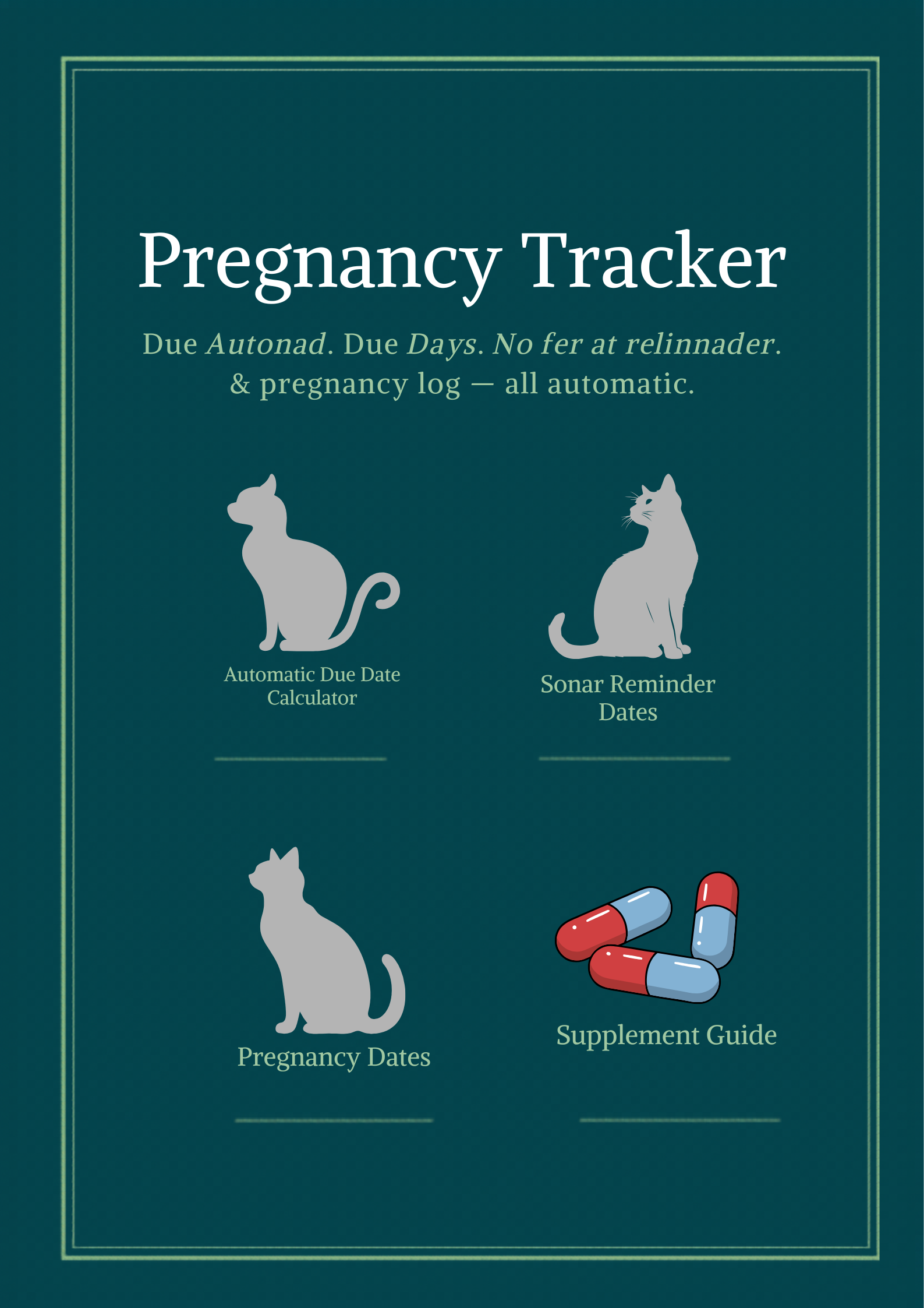 Log weekly pregnancy observations, queen weight and notes throughout each pregnancy. A complete pregnancy supplement guide covers Omega-3, Folic Acid, Taurine, Calcium, Probiotics and Vitamin E — with dosages and timing explained. A full pregnant queen feeding plan guides you from early pregnancy through to lactation, based on species-appropriate raw nutrition.